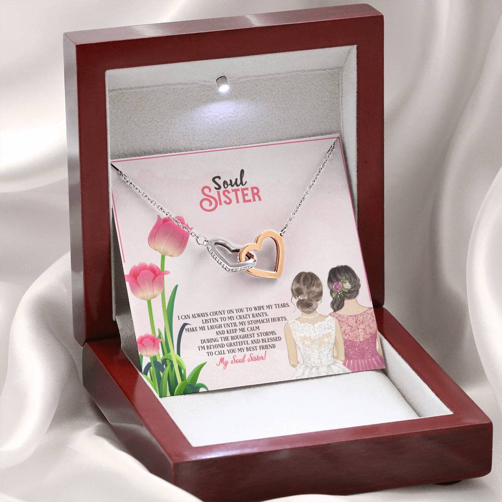 "I can always count on you to wipe my tears, listen to my crazy rants, make me laugh until my stomach hurts, and keep me calm during the roughest storms. I'm beyond grateful and blessed to call you my best friend. My Soul Sister!"
