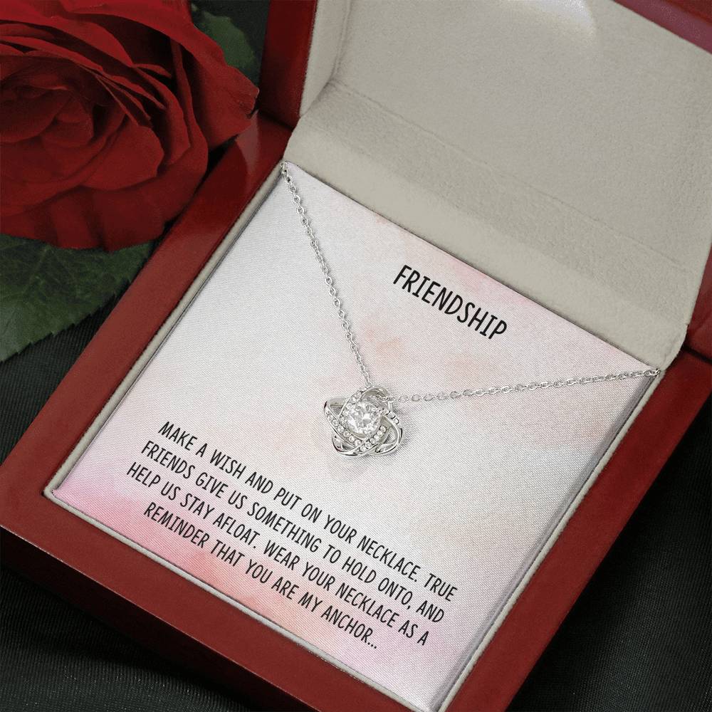 "Make a wish and put on your necklace. True friends give us something to hold onto and help us to stay afloat. Wear your necklace as a reminder that you are my anchor..."