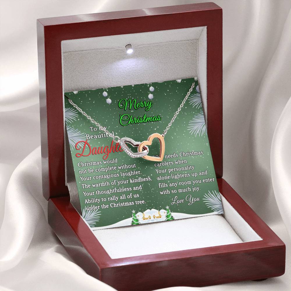 Two hearts embellished with Cubic Zirconia stones, interlocked together as a symbol of never-ending love. Made with high quality polished surgical steel. Cable chain measures 18 inches with a 4 inch extension, and fastens with a lobster clasp.