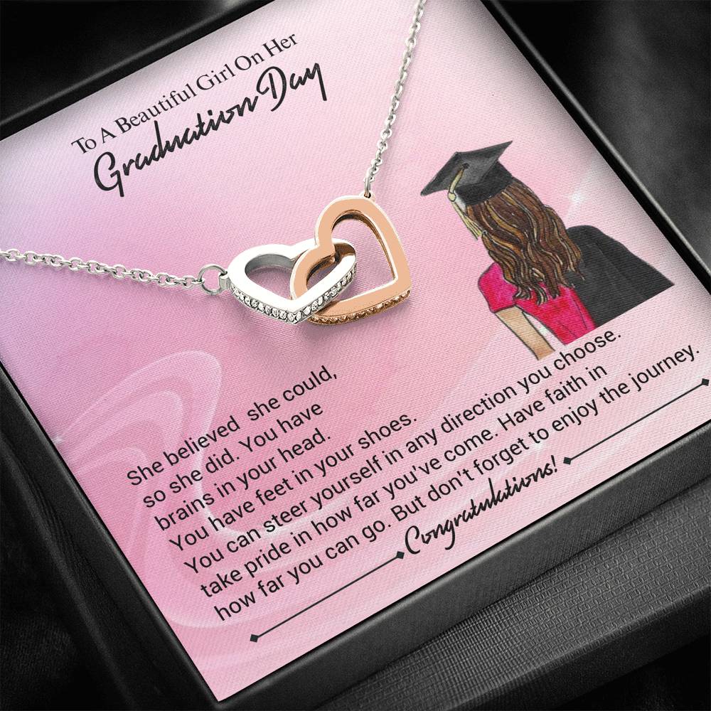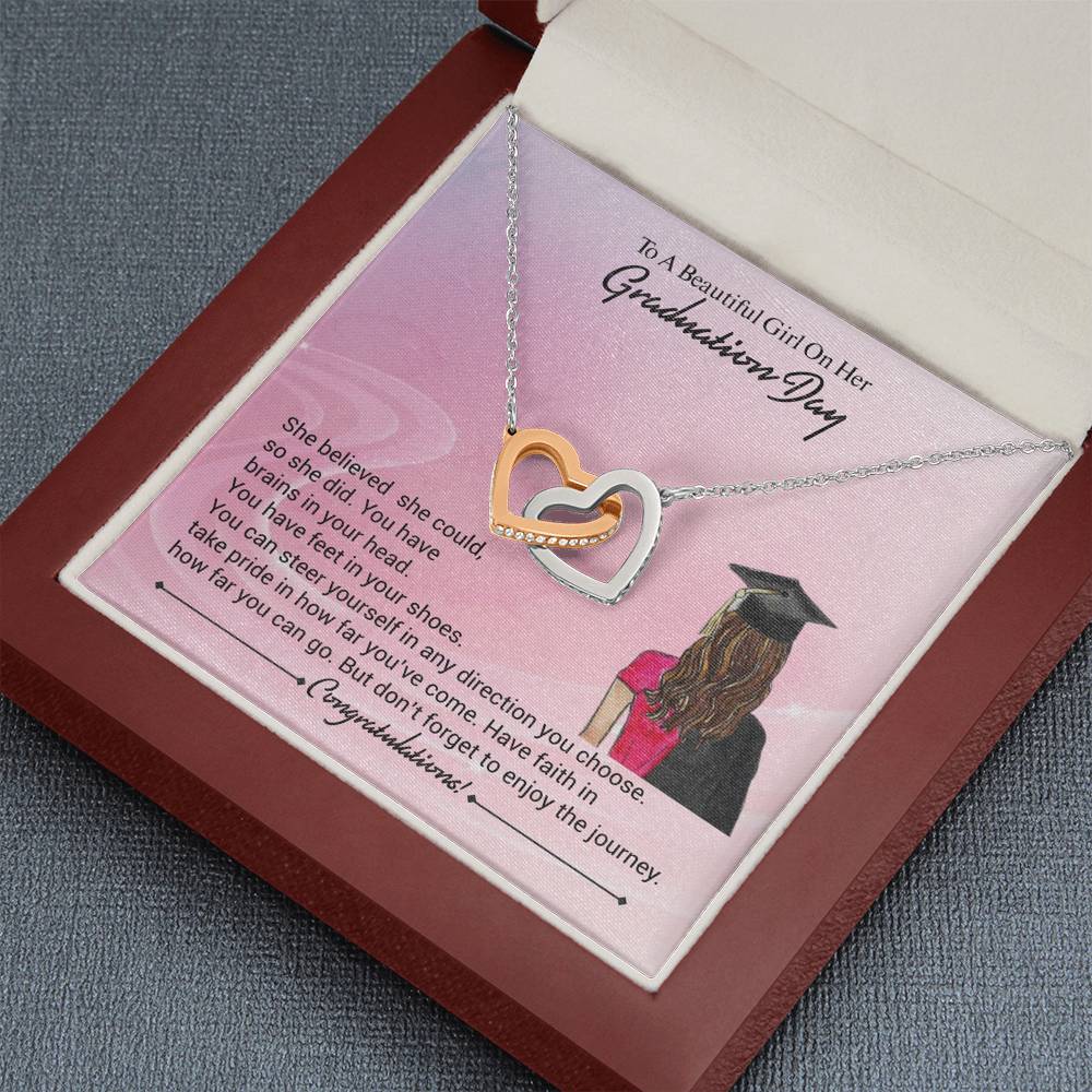 Two hearts embellished with Cubic Zirconia stones, interlocked together as a symbol of never-ending love. Made with high quality polished surgical steel. Cable chain measures 18 inches with a 4 inch extension, and fastens with a lobster clasp.