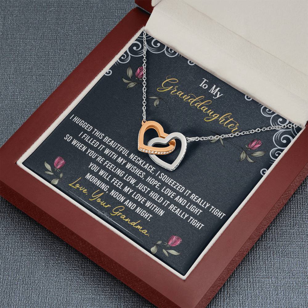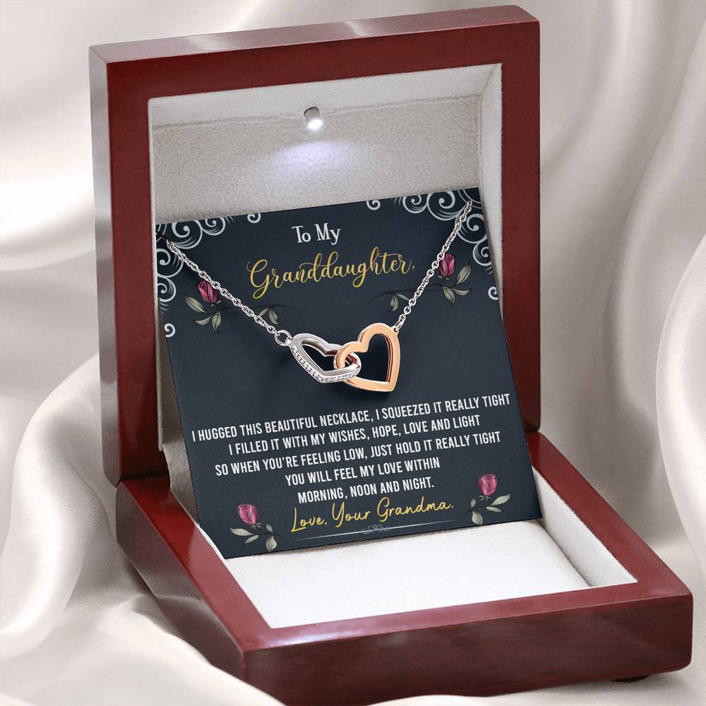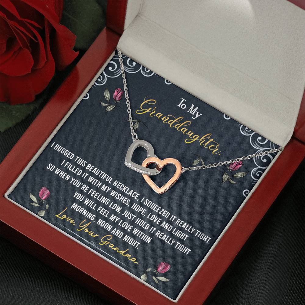 "I hugged this beautiful necklace, I squeezed it really tight. I filled it with my wishes, hope, love and light. So when you're feeling low, just hold it really tight. You will feel my love within morning, noon and night."