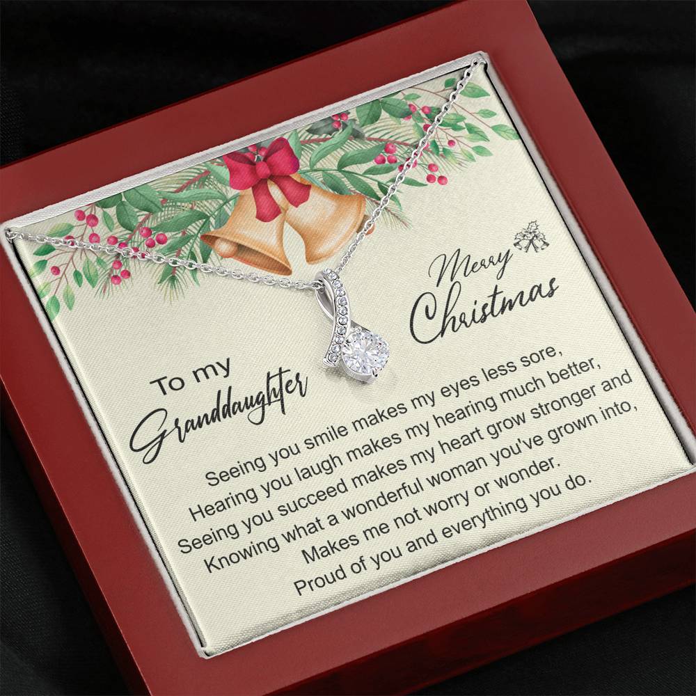 "Seeing you smile makes my eyes less sore, Hearing you laugh makes my hearing much better, Seeing you succeed makes my heart grow stronger and knowing what a wonderful woman you've grown into, makes me not worry or wonder. Proud of you and everything you do."