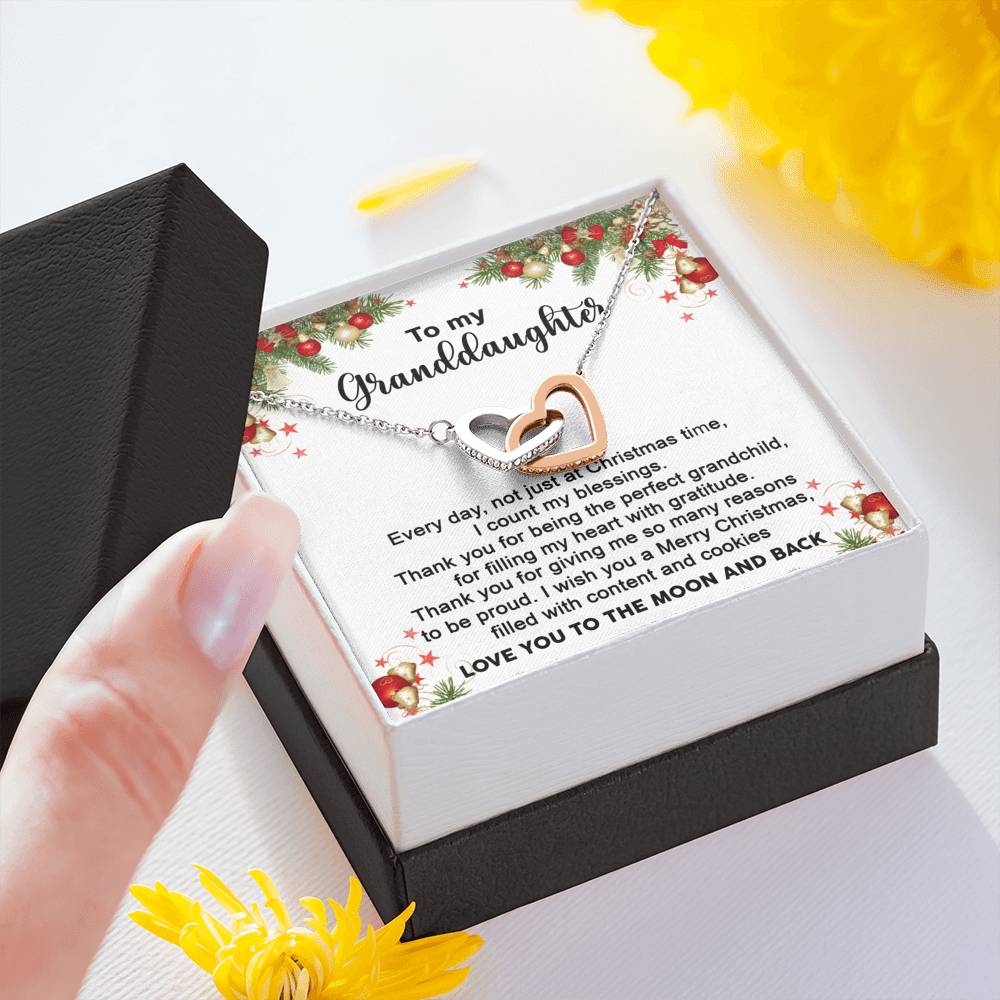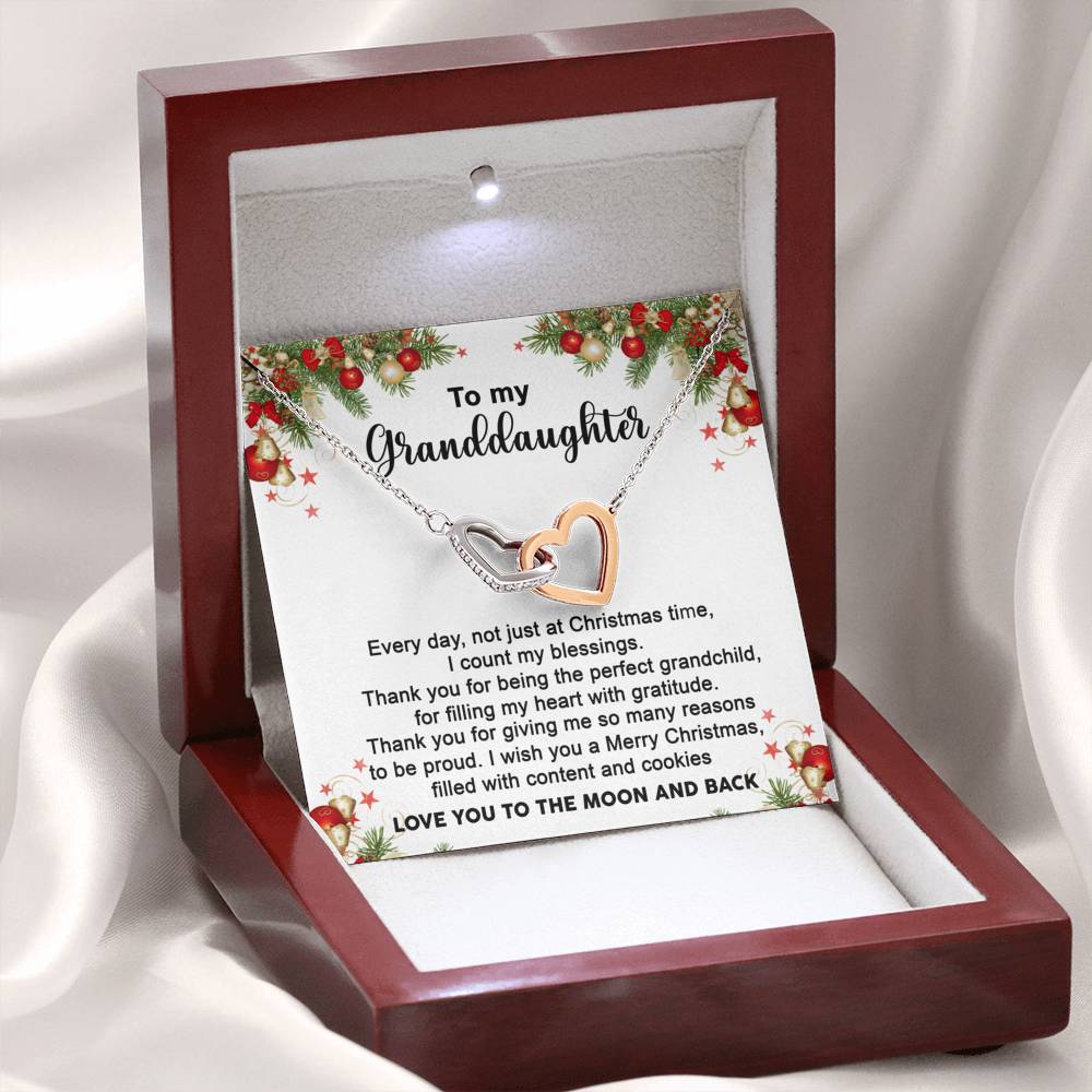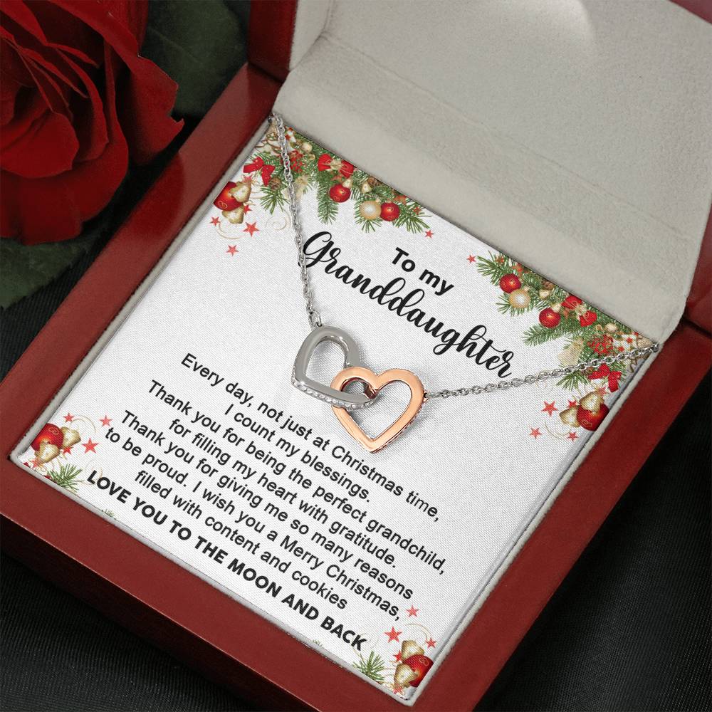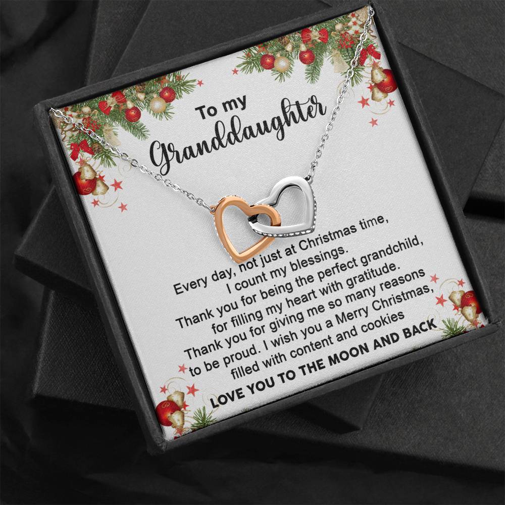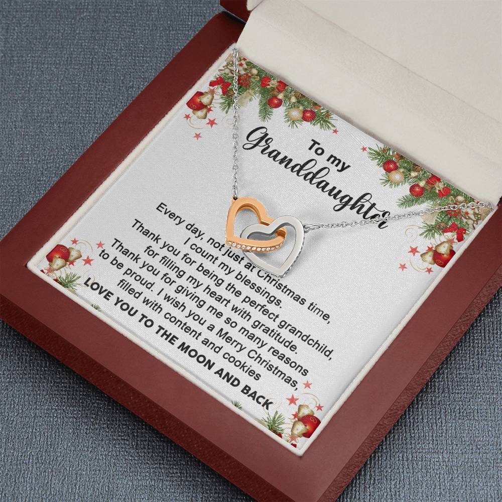 "Every day, not just at Christmas time, I count my blessings. Thank you for being the perfect grandchild, for filling my heart with gratitude. Thank you for giving me so many reasons to be proud. I wish you a Merry Christmas filled with content and cookies. Love you to moon and back."