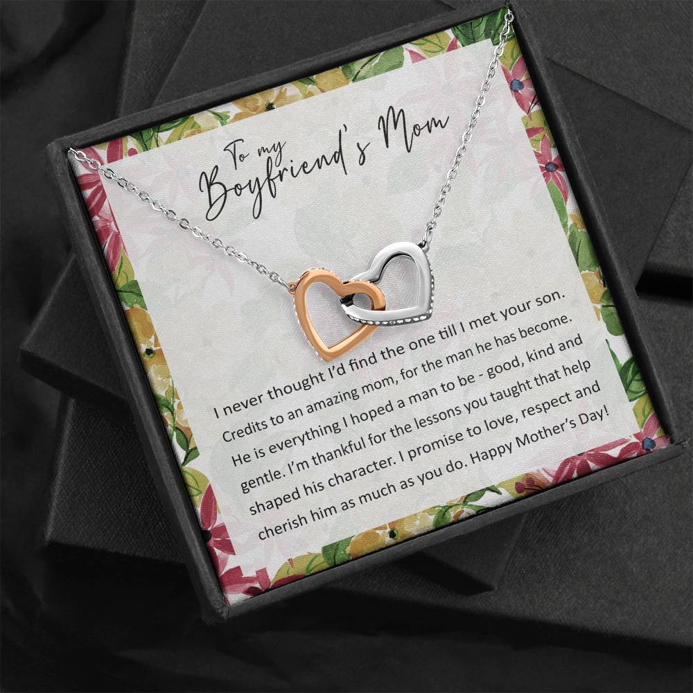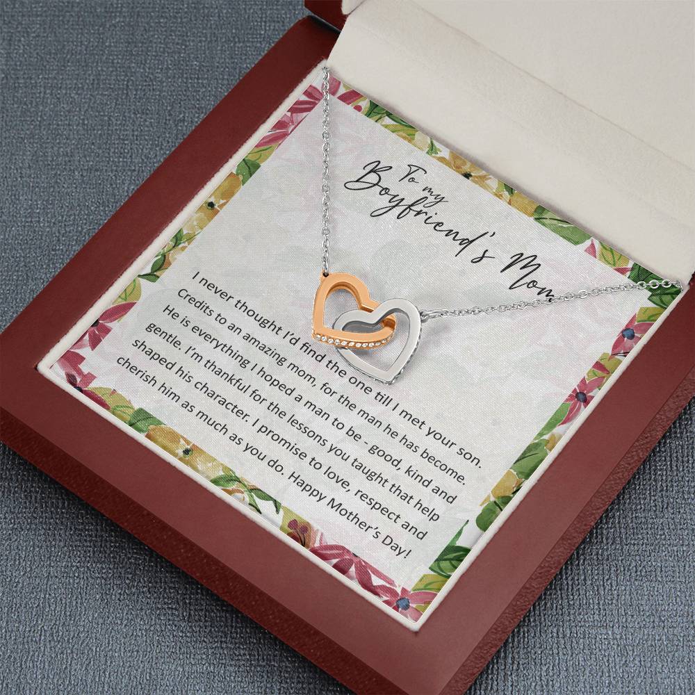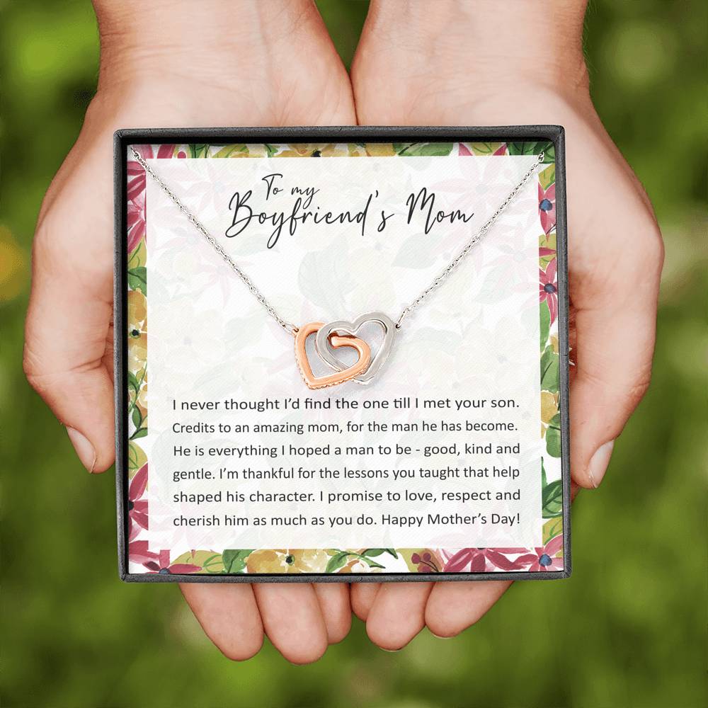 "I never thought I'd find the one till I met your son. Credits to an amazing mom, for the man he has become. He is everything I hoped a man to be - good, kind and gentle. I'm thankful for the lessons you taught that help shaped his character. I promise to love, respect and cherish him as much as you do. Happy Mother's Day!"
