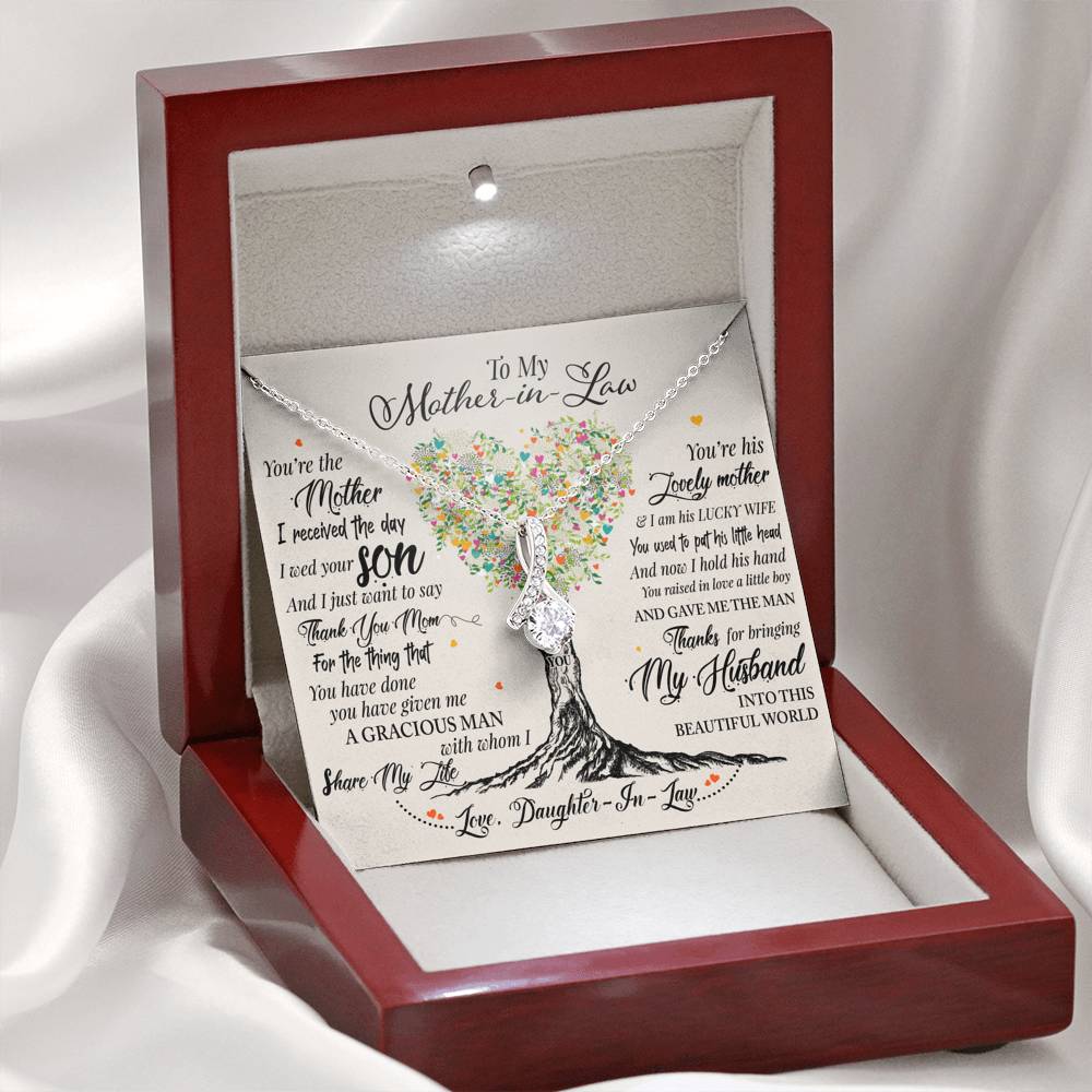 "You're the mother I received the day I wed your son. And I just want to say thank you Mom for the thing that you have done. You have given me a gracious man with whom I share my life. You're his lovely mother and I am his lucky wife. You used to pat his little head and now I hold his hand. You raised in love a little boy and gave me the man. Thanks for bringing my husband into this beautiful world. "