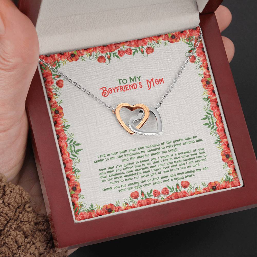 "I fell in love with your son because of the gentle way he spoke to me. The kindness he showed to everyone around him, and the way he made me laugh. Now that I've gotten to know you. It's because of you and who you raised him to be, that I fell in love with your son, your kindness, your warmth, and your love have shaped him to be the most wonderful man I have ever met and I am beyond lucky to have you the extra gift of you in my life as well. Thank you for raising the perfect man and welcoming me into your life with open arms and a loving heart."
