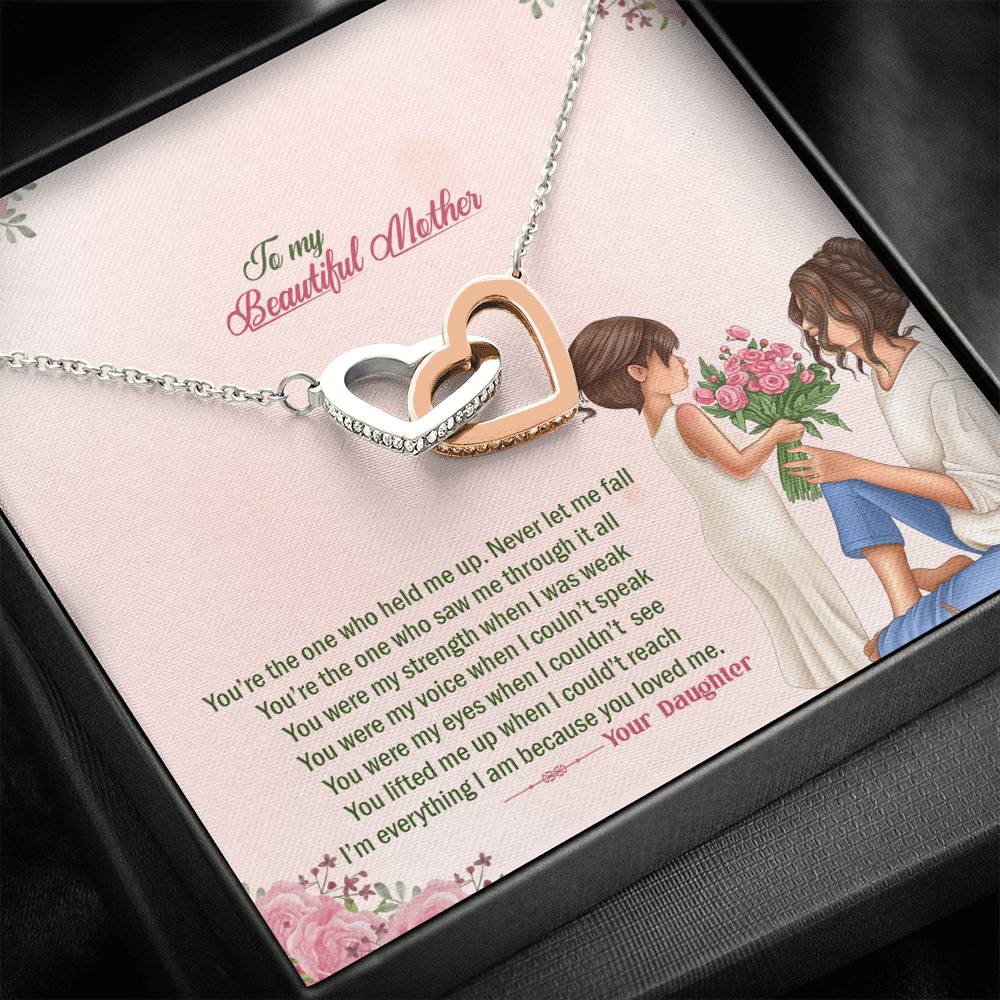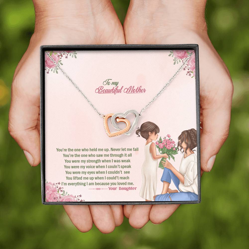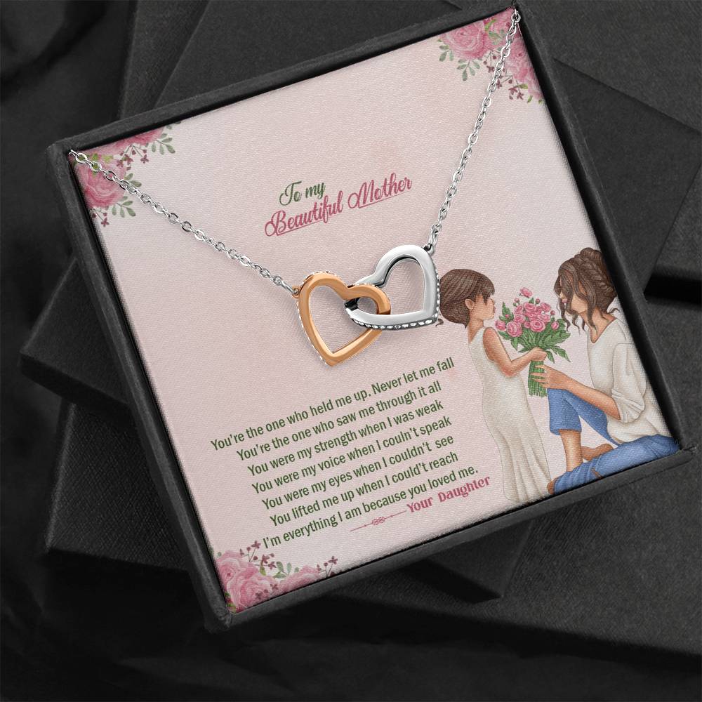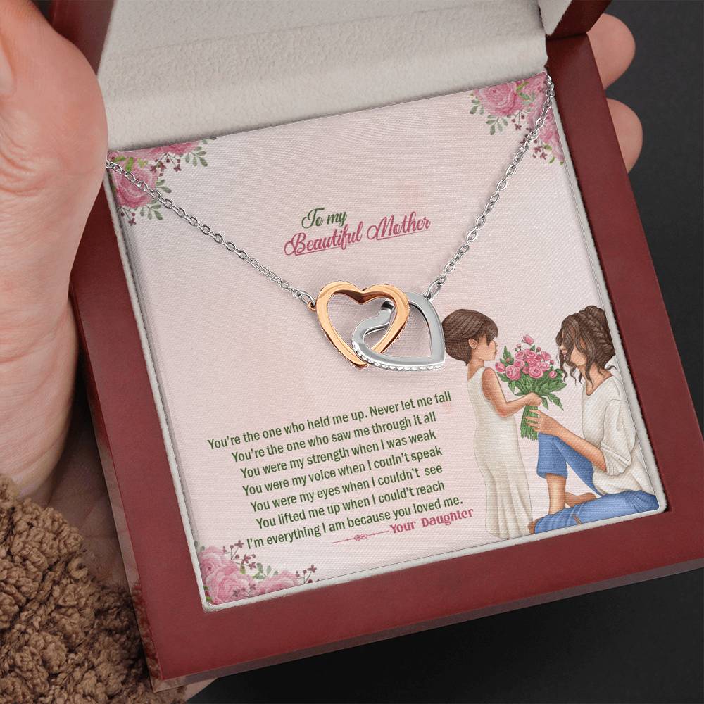 "You're the one who held me up. Never let me fall. You're the one who saw me through it all, you were my strength when I was weak, you were my voice when I couldn't speak, you were my eyes when I couldn't see, you lifted me up when I couldn't reach, I am everything I am because you loved me."