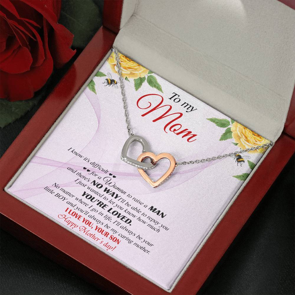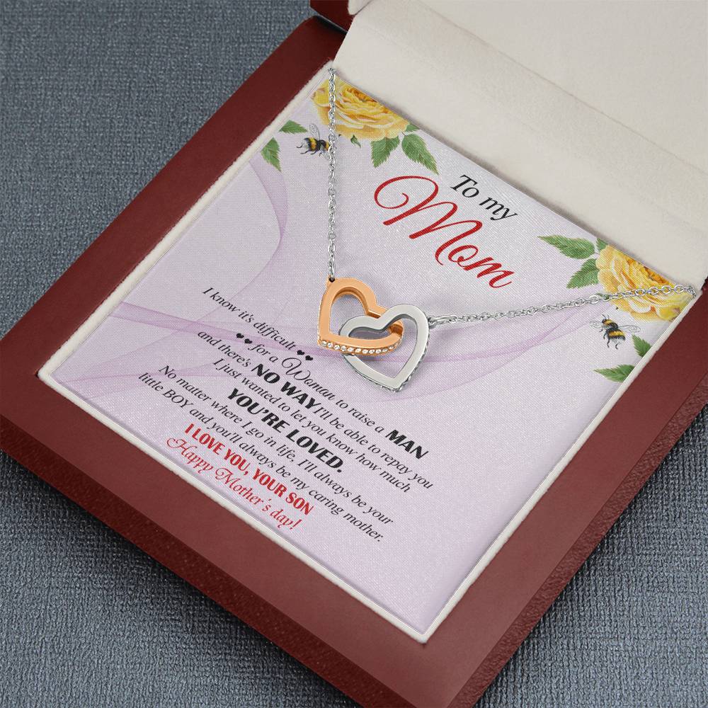 "I know it's difficult for a woman to raise a man and there's no way I'll be able to repay you. I just wanted to let you know how much you're loved. No matter where I go in life, I'll always be your little boy and you'll always be my caring mother. I love you, your son."