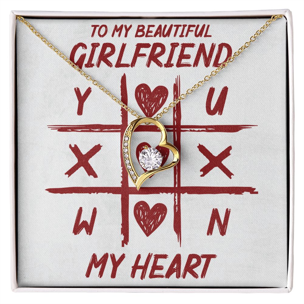 The dazzling Forever Love Necklace is sure to make her heart melt! This necklace features a stunning 6.5mm CZ crystal surrounded by a polished heart pendant embellished with smaller crystals to add extra sparkle and shine. Beautifully crafted with either a white gold or yellow gold finish, be sure to give her a classic gift she can enjoy everyday.
