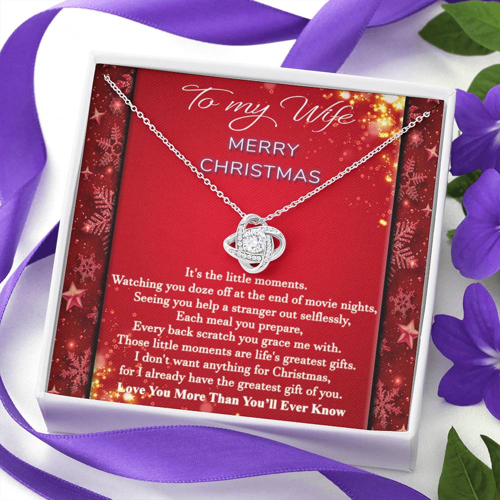 "It's the little moments. Watching you doze off at the end of movie nights, seeing you help a stranger out selflessly, each meal you prepare, every back scratch you grace me with. Those little moments are life's greatest gifts. I don't want anything for Christmas, for I already have the greatest gift of you. Love you more than you'll ever know."