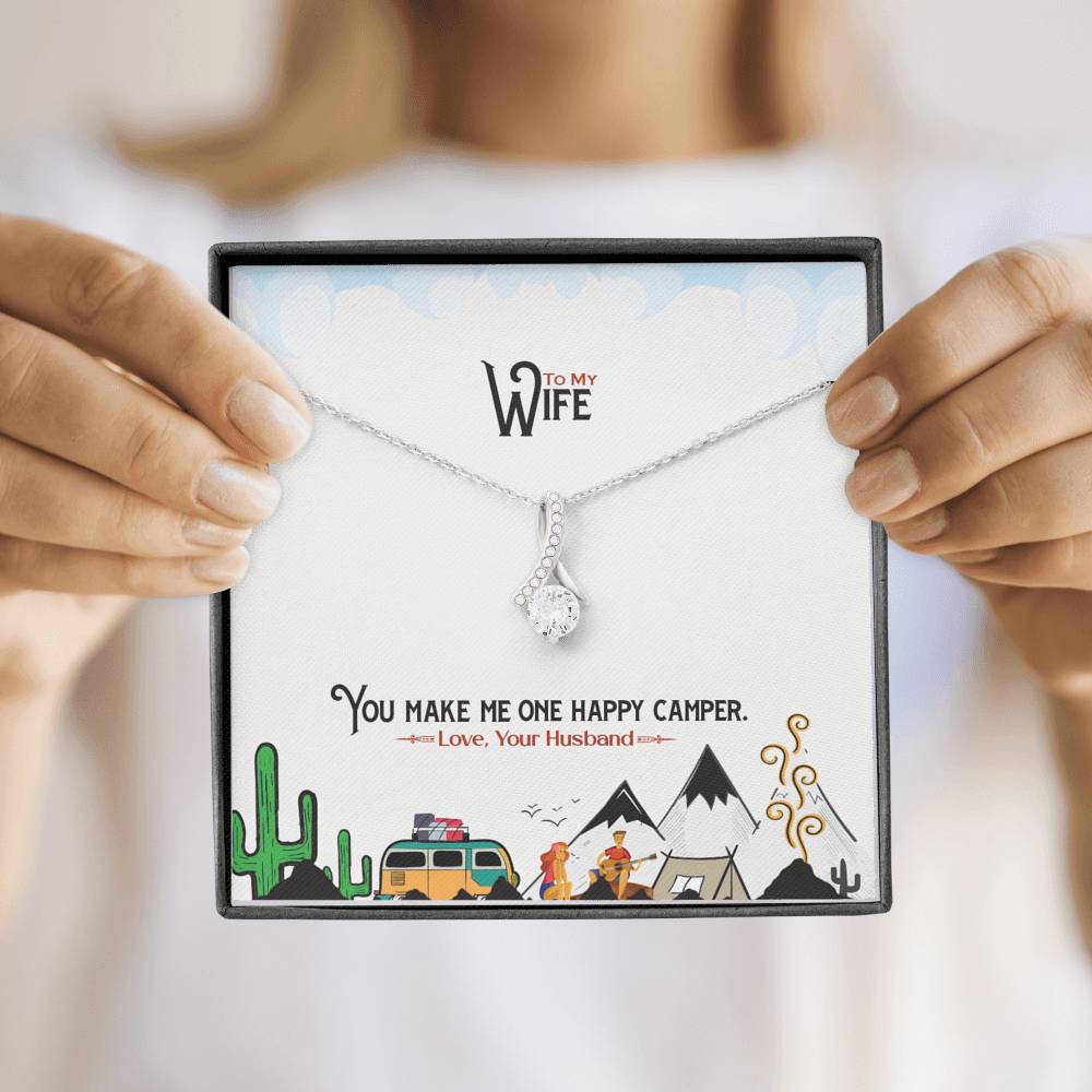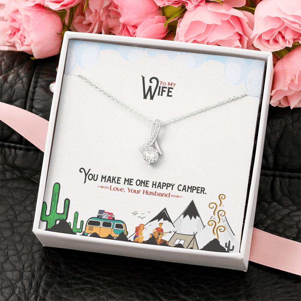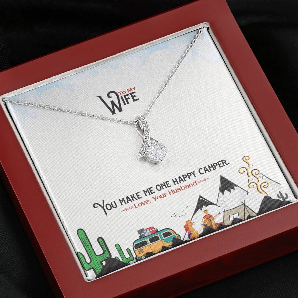 Melt her heart with this ALLURING BEAUTY necklace gift! The petite ribbon shaped pendant is finished with 14K white gold over stainless steel, and is embellished with dainty clear crystals surrounded by a sparkling 7mm round cut Cubic Zirconia.
