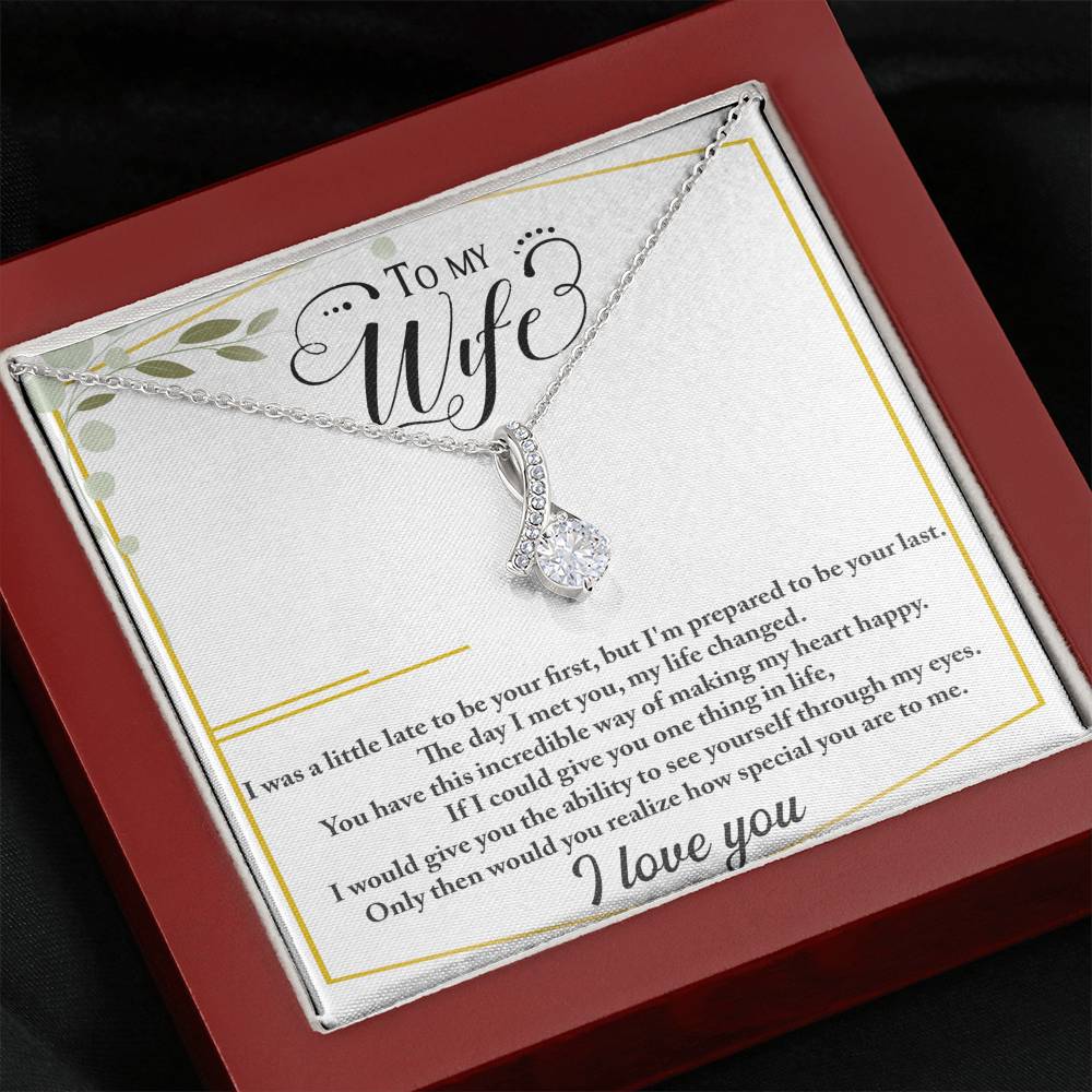 "I was a little late to be your first, but I'm prepared to be your last. The day I met you, my life changed. You have this incredible way of making my heart happy. If I could give you one thing in life, I would give you the ability to see yourself through my eyes. Only then would you realize how special you are to me. I love you."